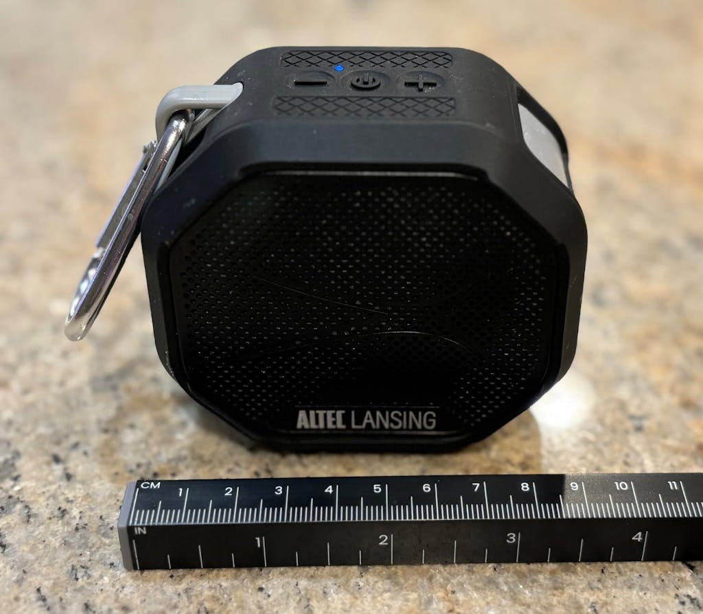 I like to take speakers with me when I work outside so I got this. I liked that this is Altec Lansing. It has a magnet to mount it or use the clip or mount for a bike etc. I also like that it can be used around water so I can use it while hanging out in the pool or cleaning it. As for the sound, it is what I would expect from a tiny speaker. It does give of plenty of sound but no bass etc which is usual. The quality is great. It is very portable because of the size. For $20, it's great.