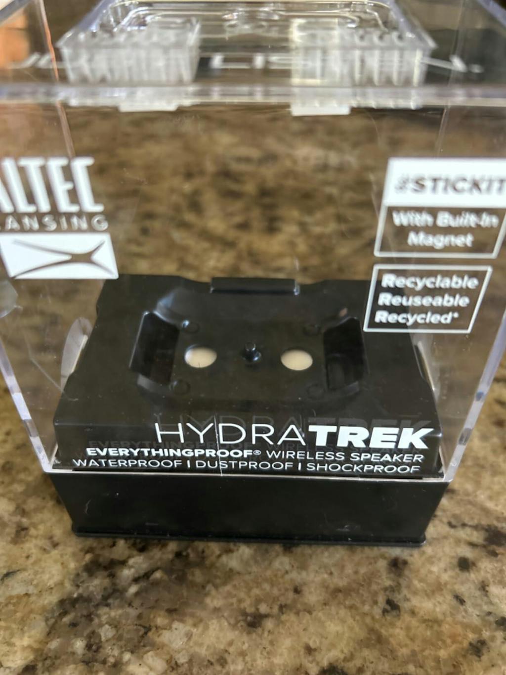 The HydraTrek is your portable audio companion that clips conveniently onto your bag for on-the-go sound. Clip, stick, or mount this EVERYTHINGPROOF® speaker using its magnetic design and included attachments.